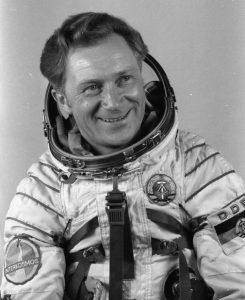 Siegmund Jähn (1937-2019) war 1978 der erste Deutsche im All. Er wurde dafür als „Held der DDR“ ausgezeichnet. Jähn flog acht Tage lang mit einem sowjetischen Raumschiff insgesamt 125-mal um die Erde. Bei seiner Rückkehr auf die Erde zog er sich bleibende Wirbelsäulenschäden zu. In den 1980er-Jahren schrieb er seine Promotion zur Fernerkundung der Erde. Nach der Wende arbeitete Jähn für das Deutsche Zentrum für Luft- und Raumfahrt (DLR) sowie die Europäische Weltraumorganisation (ESA). Er bereitete Astronauten für ihre Missionen vor.